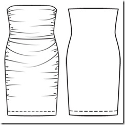 O modelo eleito para esta edição foi o vestido-tubo preto, com franzidos laterais, da Revista Burda Style de Julho/2011 (modelo 117 da pág. 31), que se destaca pela simplicidade e elegância do corte justo, que realça a beleza feminina.