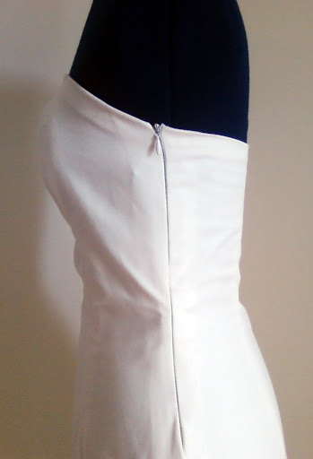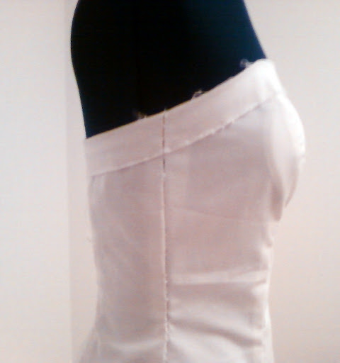Deve-se juntar as peças e alinhavar sempre de cima para baixo (no sentido do cair do modelo), porque é muito importante que as linhas do decote, "pique" da cintura e anca fiquem mesmo alinhados, porque senão, compromete a forma como assenta o modelo formando pregas e franzidos que depois para resolver este problema é uma dor de cabeça!