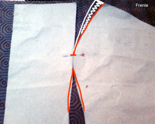 Depois, com o auxílio da recortilha, contornamos todas as linhas do molde (costuras, pinças, etc...).